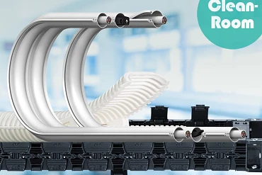 e-chains® in a cleanroom environment have to be abrasion-resistant as airborne particles can be released and can contaminate the cleanroom.