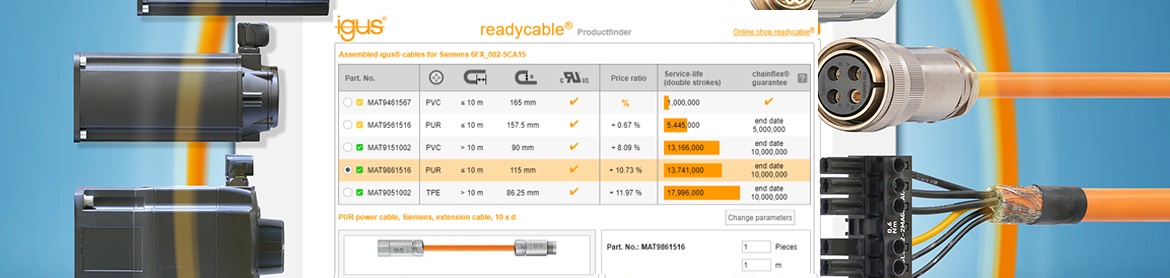 The readycable® product finder with direct online calculation of the service life of the selected drive cables