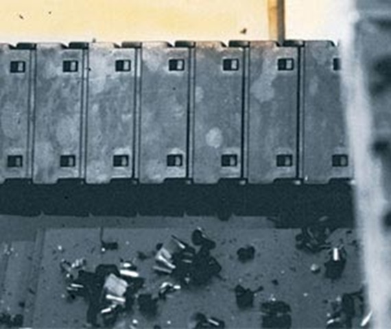 Laboratory tests and numerous field applications prove that igus® e-chains® and E-Tubes reliably protect cables in welding robots and machine tools. Although welding splatter leaves some visible traces, it does not impair the material or the function. igus® E-Tubes have successfully withstood tests at 900°C with medium-sized hot metal chips. They are in use worldwide in the chip area of machine tools. (Please note: igumid G in direct contact with large amounts of melted aluminum is not recommended.)