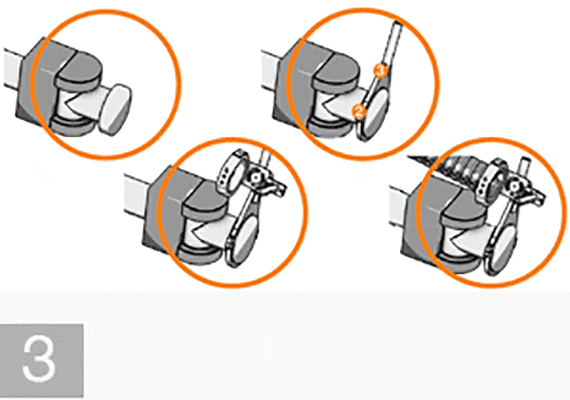 Assemble the "clamp clip" (2) on axis 6 of the robot and then the adjustable triflex® R mounting bracket