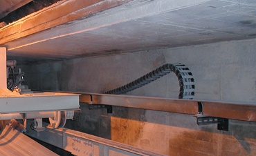 World's biggest polymer energy chain: Being many times lighter than comparable steel chains it easily moves over 100 kg of filling per meter.