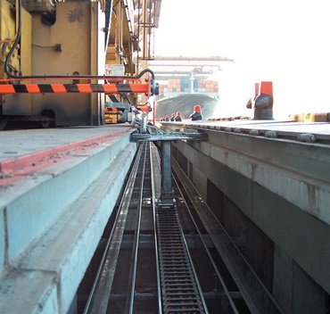 Quayside crane with igus® e-chain systems®. Long distances up to 800 m are possible.