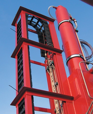 400t Top Drive with 35m travel. Two 600 Series ESD version e-chains®, mounted beside the Top Drive on the mast.