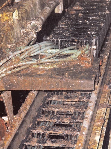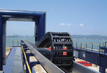 The plastic energy chain guides 200kg/m cables on an offshore drilling vessel