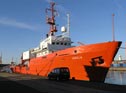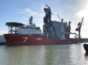 Changed crane supply on an installation vessel: An XXL energy chain with a rearward bendingradius shall ensure the power and signal supply as an alternative to a slip ring.