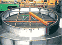 540° rotary module inside the bridge platform to allow the pivoting motion. The series E4.1 e-chain® for energy guidance (including fire extinguishing water) of the extendible telescopic unit of the bridge.