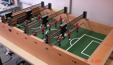 As part of his diploma thesis, Peter Rohde is constructing a soccer table in which the opponent is a fully automated computer. The table shows the possibilities of sophisticated automation and highly qualified control technology.