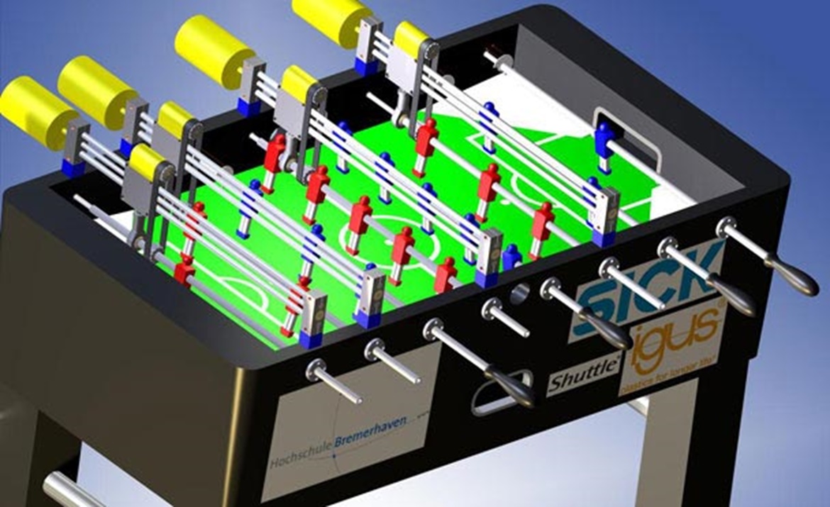 igus® was chosen as a collaboration partner because of the good cooperation in previous projects. Based on a commercially available soccer table, the investigations quickly revealed that the required dynamics and precision cannot be achieved with the built-in standard bearings. The drylin® R - FJUM-01 bearings meet these two criteria with flying colours and can also be easily integrated into the table. Very low coefficients of friction enable extreme dynamics and the high abrasion resistance in dry operation ensures maintenance-free operation. Furthermore, the bearings are ideally suited for the rotating or oscillating movements of the play rods.