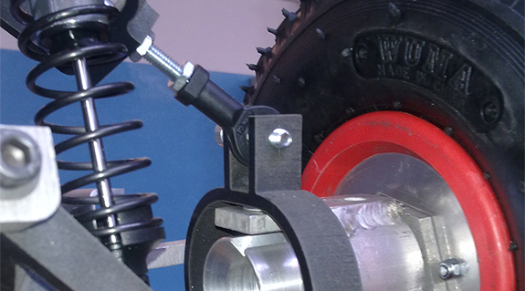 Steering linkage of the hydrogen-powered world record vehicle HYSUN 3000.